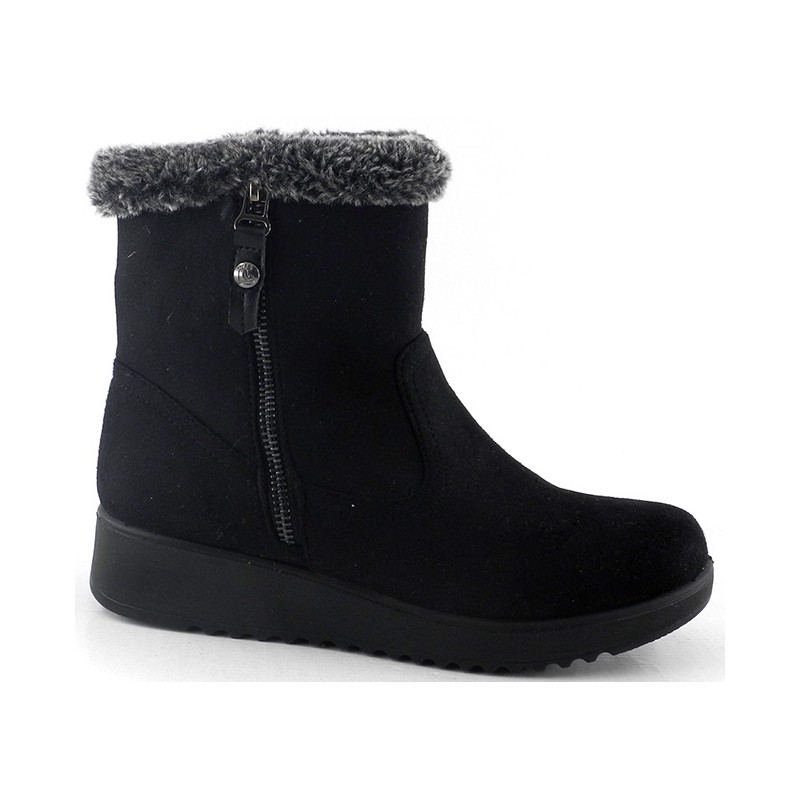 Botín de señora de la marca AMARPIES, fabricado en antelina con tratamiento repelente al agua. Plantillas Extraíbles y cierre mediante cremallera lateral.